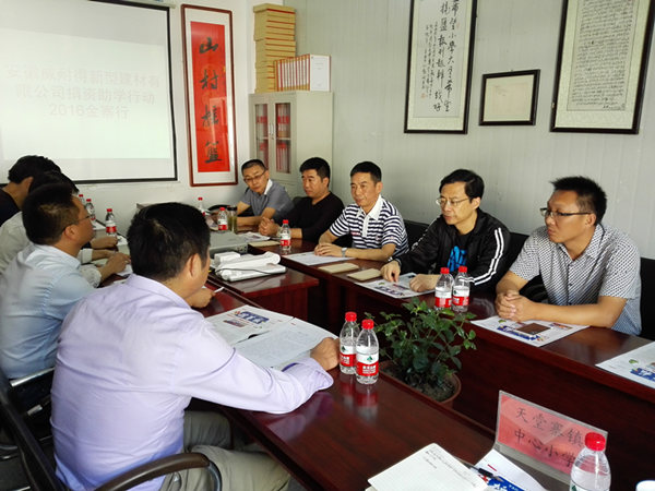 ,安徽威耐得新型建材有限公司董事長劉必武一行深入天堂寨鎮(zhèn)中心小學(xué)開展捐資助學(xué)活動,鎮(zhèn)長馬千里陪同